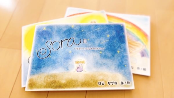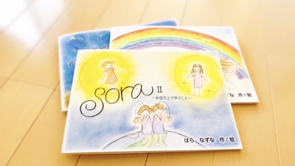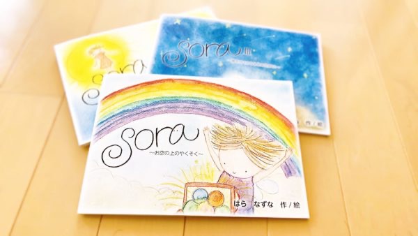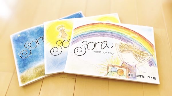 絵本「SORA」は私が覚えている胎内記憶、お空の上のお話です。ご希望の方には、絵本をもとに魂についてのお話会も開催しています。